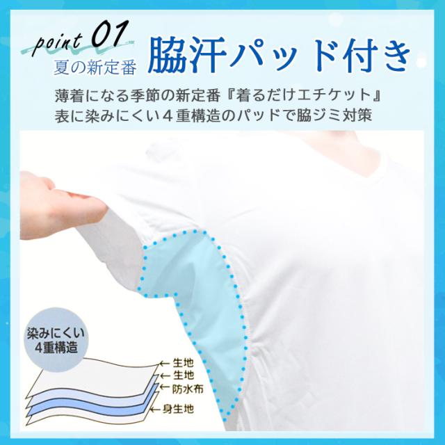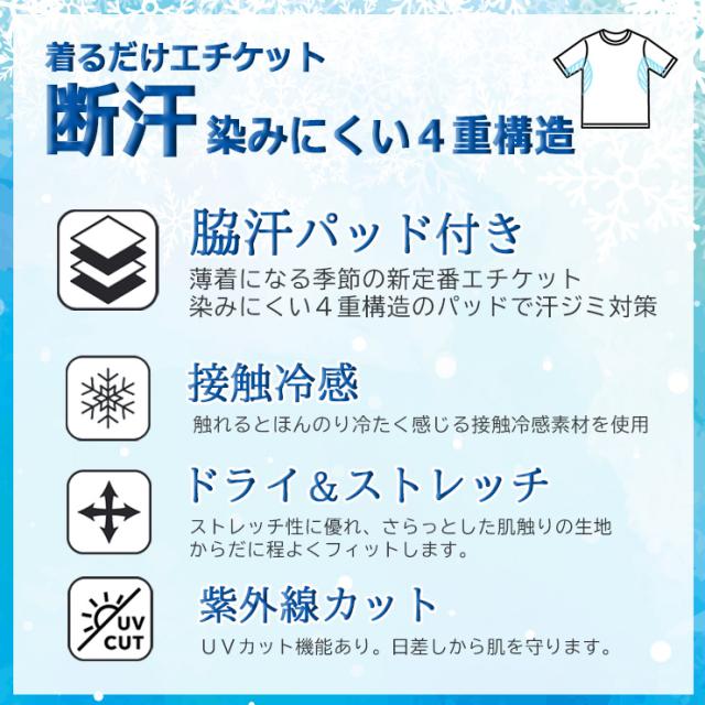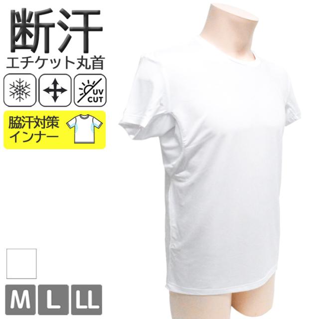 メンズ 汗対策インナー アイリン 冷感 断汗 半袖丸首 12449 送料無料 単品 ドライ ストレッチ クルーネック 汗取りパット付き 肌着 下着(06825)