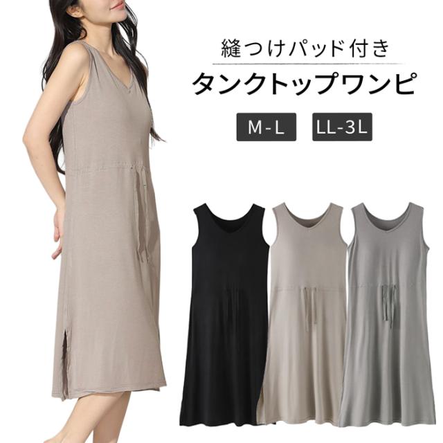 カップ付き ワンピース ルームウェア ミディ丈 レディース ノースリーブ さらさら 胸元透けない ウエスト紐付き 部屋着 夏 ワンマイルウェア 黒 rr-027