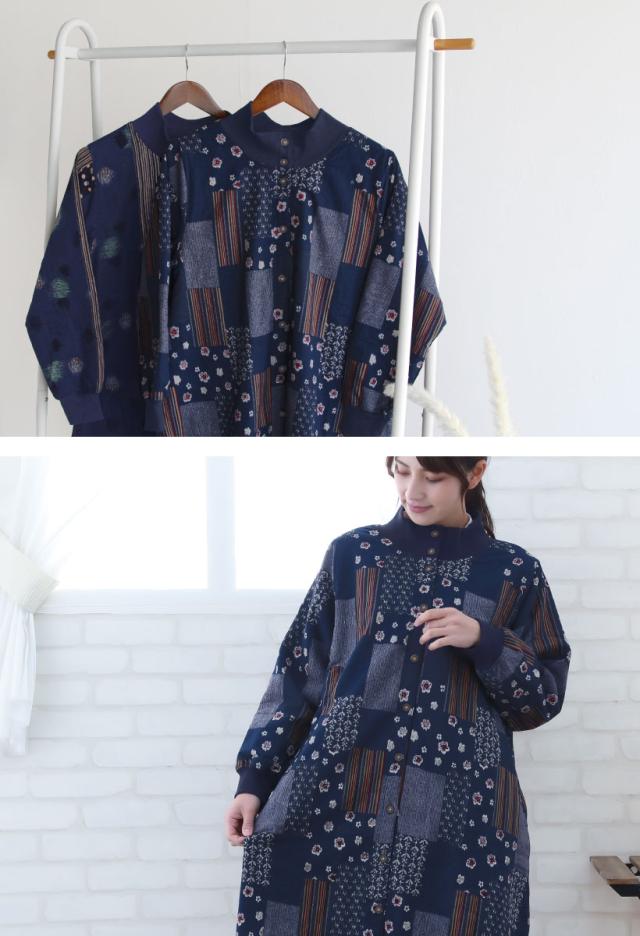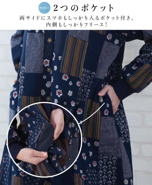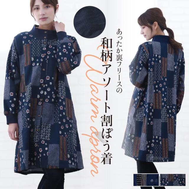【宅急便送料無料】和柄裏フリース割烹着 フリースエプロン あったか 冬 おしゃれ プレゼント ギフト【宅急便送料無料】【N】【M】