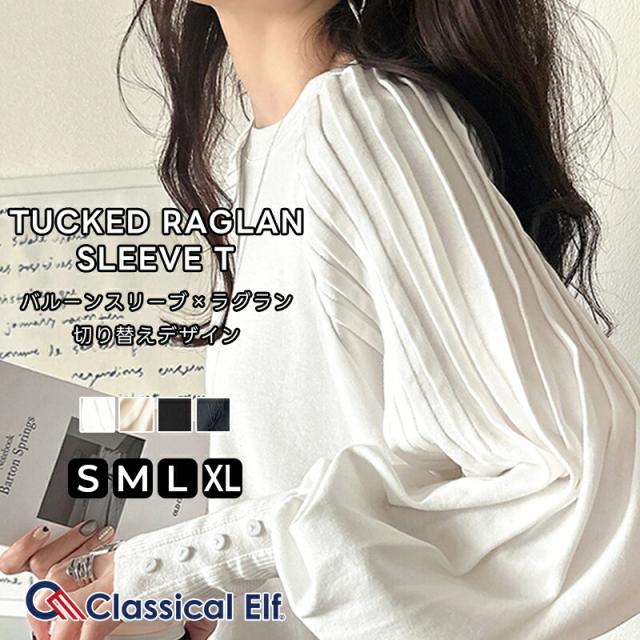 クラシカルエルフ秋新作 トップス Tシャツ レディース 綿 100% 袖山 タック ラグラン 長袖 Tee バルーン スリーブ サイド スリット 着回し ロングシーズン レイヤードコーデ 大きいサイズ 2025ss ce1300023