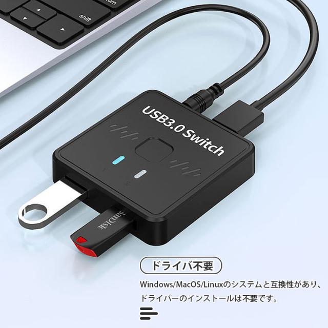 USB切替器 双方向対応 2入力1出力 1入力2出力 PC2台 USB Type-A USB3.0 2ポート 簡単切替 USB機器 切り替え スイッチ付き パソコン プリンター キーボード マウス