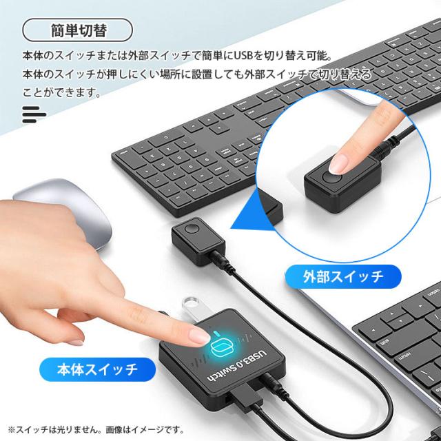 本体のスイッチまたは外部スイッチで簡単にUSBを切り替え可能。