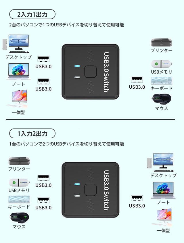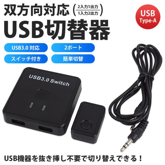 USB切替器 双方向対応 2入力1出力 1入力2出力 PC2台 USB Type-A USB3.0 2ポート 簡単切替 USB機器 切り替え スイッチ付き パソコン プリンター キーボード マウス PR-SW301-A【メール便 送料無料】