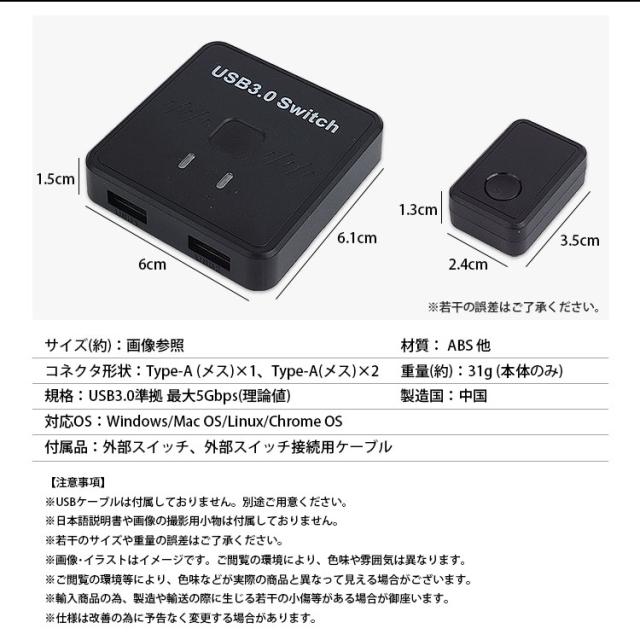 2台のパソコンで1つのUSB機器を使用する際にUSBケーブルを抜き挿しする必要がないので便利です。
