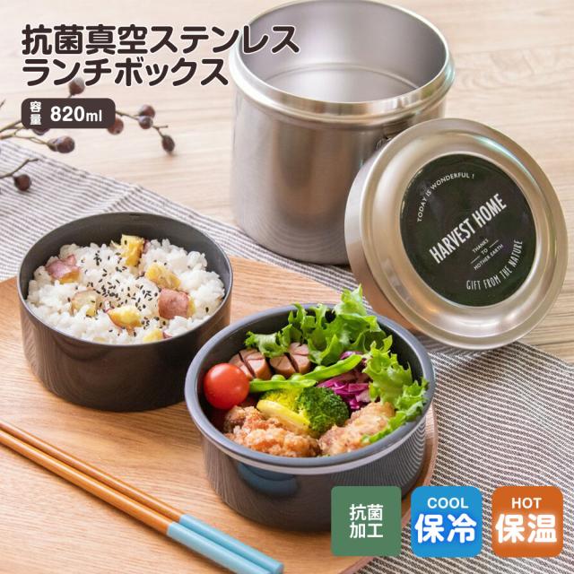 抗菌 真空 ステンレス ランチボックス 弁当箱 大きめ 820ml 2段 ランチジャー 保温ジャー 真空二重構造 保温 保冷 大容量 メンズ 男性 高校生 大学生 大人 おしゃれ シンプル シルバー STLB3DXAG