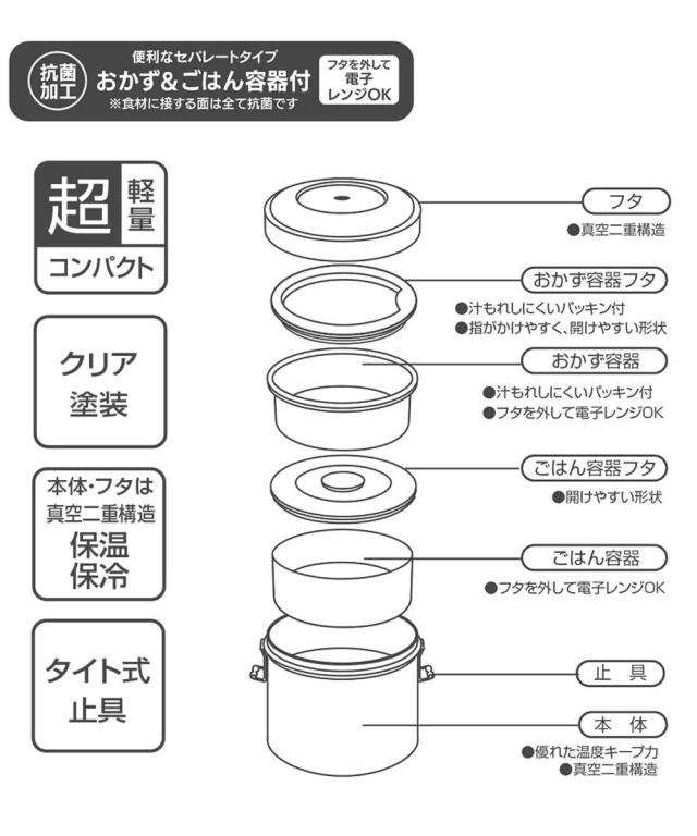 本体・フタは保温・保冷に優れた真空二重構造のお弁当箱です。