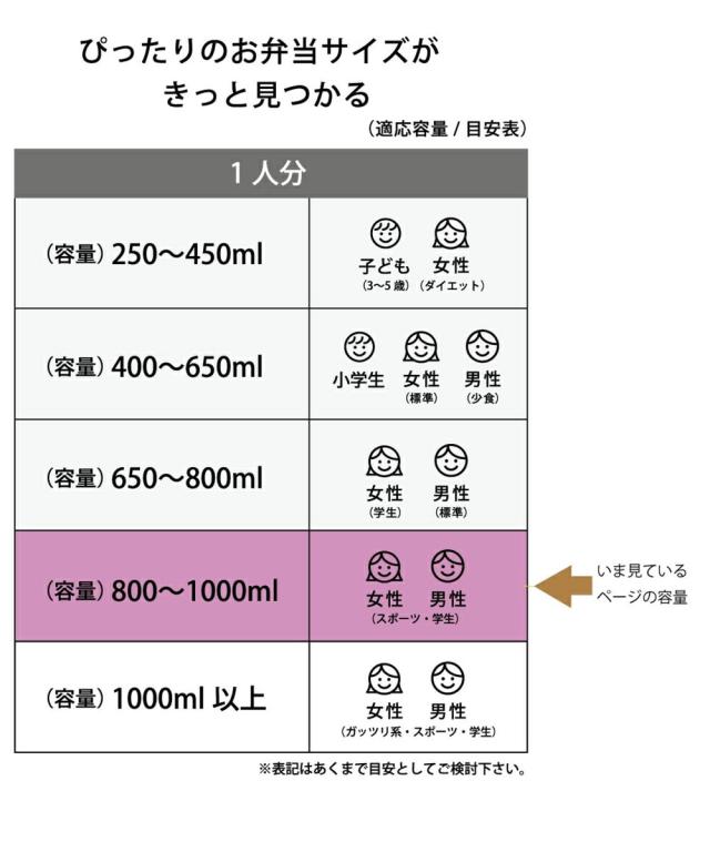 総容量:820ml(ごはん容器:400ml・おかず容器:420ml)