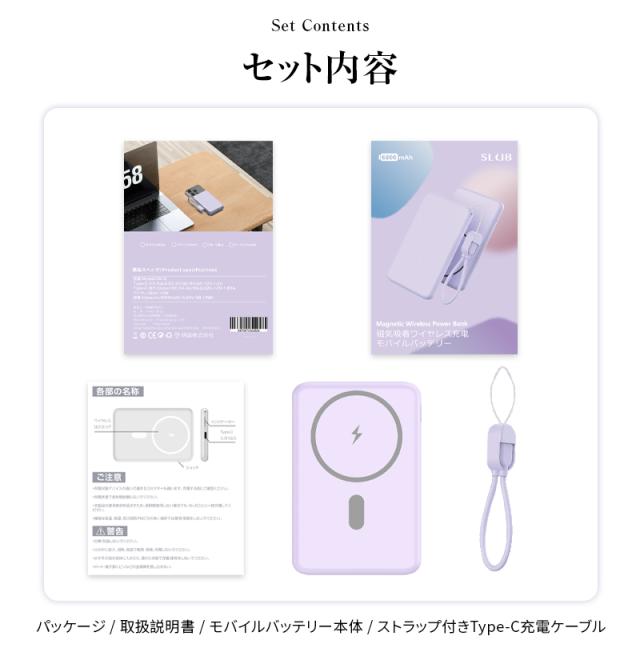 【パッケージ内容】モバイルバッテリー本体/日本語取扱説明書/ストラップ兼Type-Cケーブル