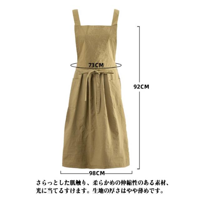 | ワンピースのようなデザインで、女性が気になるお尻回りもしっかり隠せるのもポイント♪ 軽くて、汚れ等にも付きにくく、水に濡れても乾きやすいので、エプロンに最適な素材です。 さらっとした肌触り、柔らかめの伸縮性のある素材、光に当てるすけます。生地の厚さはやや薄めです。 【男女兼用】年齢性別問わず誰でも使えるシンプルなデザイン。 腰紐は、身頃の前で結ぶので、ふくよかな方、スマートな方にもご愛用いただけます。 | |