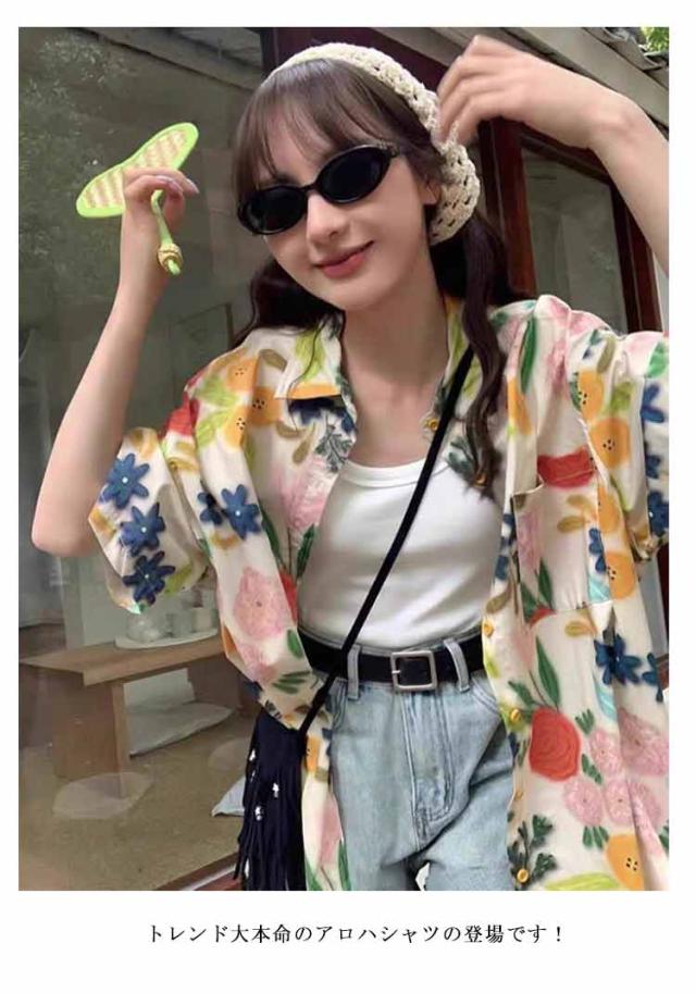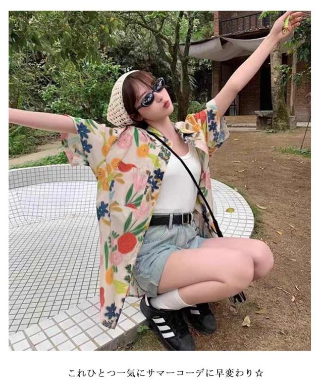 アロハシャツ レディース 半袖 トップス 夏 シャツ トップス 花柄 総柄シャツ シフォン 半袖シャツ ダンス 衣装 ヒップホップ コスチューム ハワイシャツ ボタニカル アロハ 日焼け止め服 薄手 ゆったり ビーチ リゾート かわいい ゆったり 送料無料