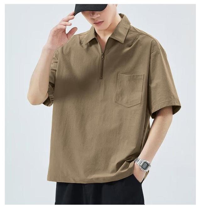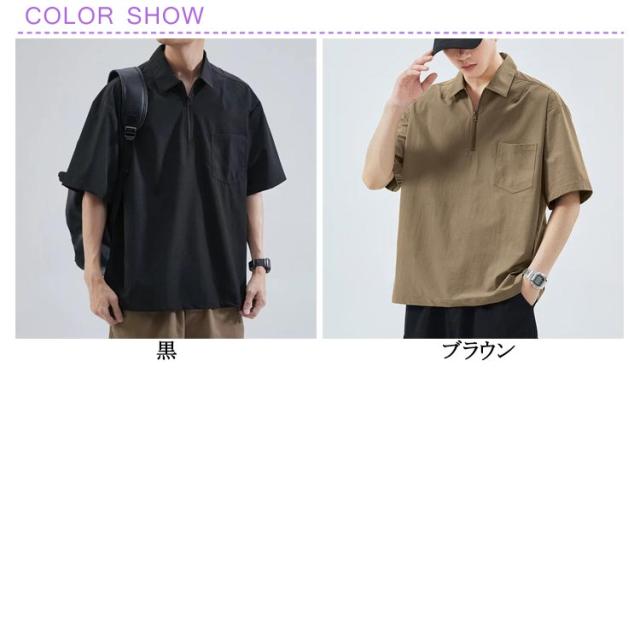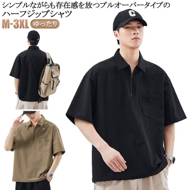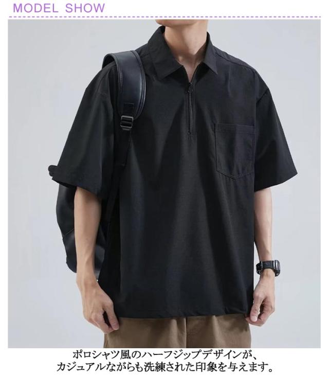 5分袖 ジップアップ シャツ メンズ プルオーバーシャツ ハーフジップ ジップシャツ ポロシャツ ゆったり 五分袖 無地 カジュアルシャツ ポロ風 ジップポロ 襟付きTシャツ 大きいサイズ ゴルフTシャツ 作業着 キャンプ 送料無料