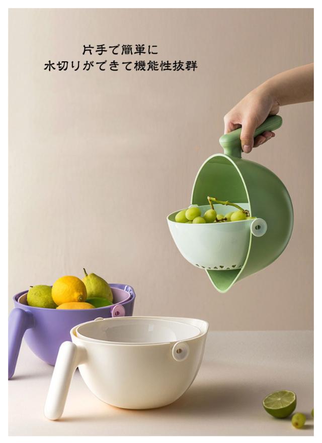 水切りボウル ボウル ざる セット 一体型 野菜水切り 果物 野菜 水切り ボール ざる 野菜水切り器 水切りざる 取っ手付き 注ぎ口付き 便利グッズ キッチングッズ キッチン 料理 調理器具 水きり サラダボウル ザル セット 家庭用品 日用雑貨 キッチンツール おしゃれ 北欧 白