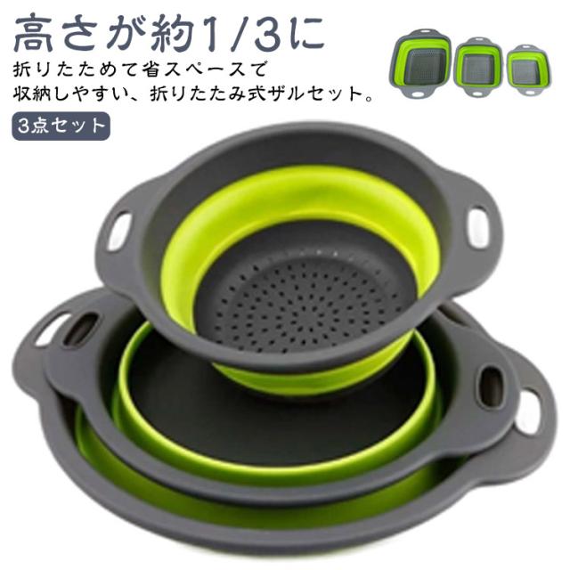 折りたたみ ザル 3点セット 丸型 角型 水切りざる 取っ手付き 吊り下げ 収納 丸 角 ざる 水切り 折りたたみザル 下ごしらえ 野菜水切り コンパクト キッチンツール 調理器具 キッチン 台所 用品 調理道具 水切り器 キャンプ アウトドア 新生活 一人暮らし 【送無】