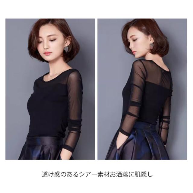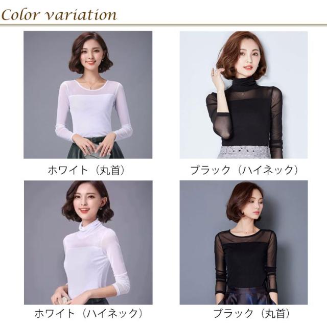 | 透け感がとってもフェミニンでセクシーな長袖のカットソー 透け感のあるシアー素材お洒落に肌隠し ハイネック&クルーネックでデコルテを美しくみせます ストレッチ素材で身体にフィットしてスタイル良く見せます | |