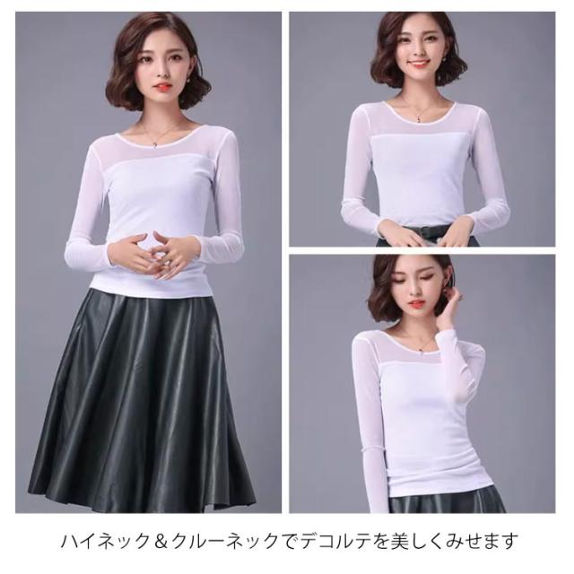 シアートップス 長袖 クルーネック シアーハイネック レース チュール トップス シアーインナー レディース 薄手 シアータートルネック 春 夏 大人 レースインナー シースルーインナー 重ね着 レイヤード トップス 透け感 ハイネック 白 黒 シースルー