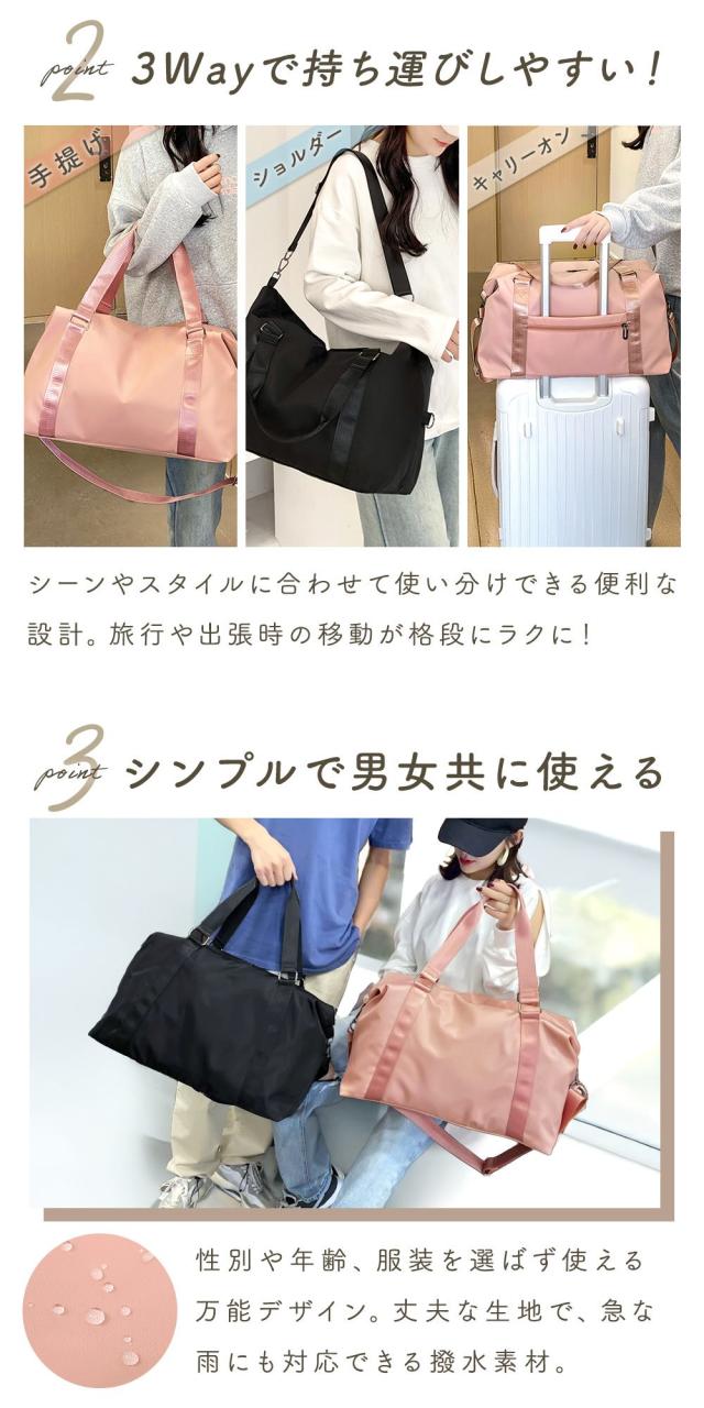 着替えや荷物がしっかり入るので、1泊2泊の旅行はもちろん、マザーズバッグやジム鞄としても使えます。