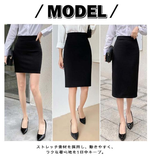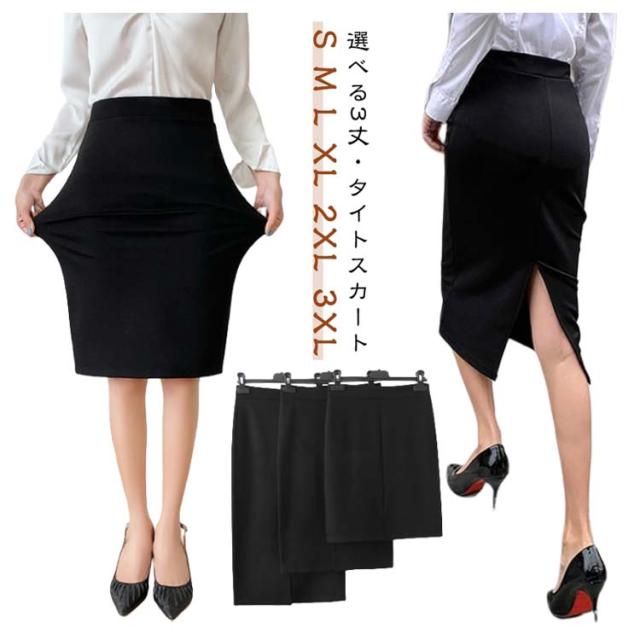 タイトスカート 黒 選べる3丈 ひざ丈 スカート ビジネス スリット入り ウエストゴム ミニスカート レディース 膝丈 事務服 ストレッチ 制服 オフィス 企業 ユニフォーム リクルート 通勤 面接 仕事用 大きいサイズ ボトムス スリム 春夏