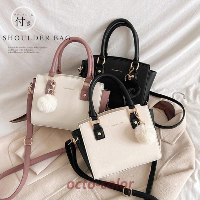 斜めがけバッグ ファーチャーム付き ミニハンドバッグ オフィス トートバッグ