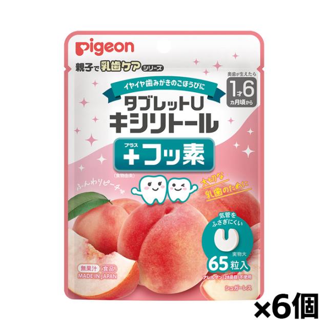 ピジョン タブレットU キシリトール+フッ素 ふんわりピーチ味 65粒入り x1個 x6個