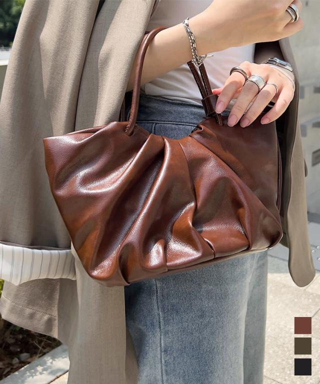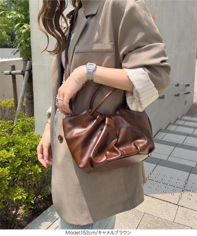 ギャザーデザインフェイクレザーバッグ B1638 入荷済 レディース 20代 30代 40代 バッグ 鞄 カバン ハンド ショルダー ギャザー ハンドバッグ ショルダーバッグ 肩掛け ストラップ 肩掛けバッグ 春 夏 秋 冬 50代 60代 70代 プ