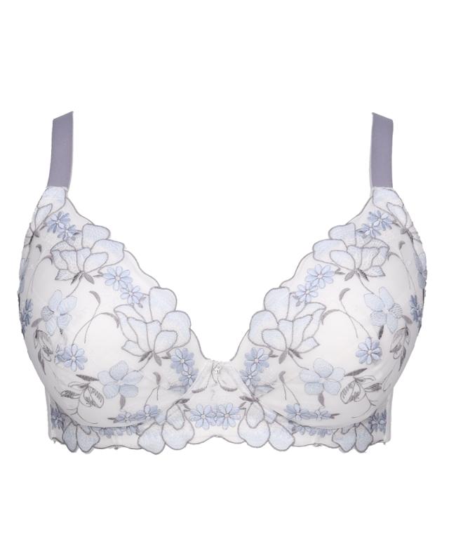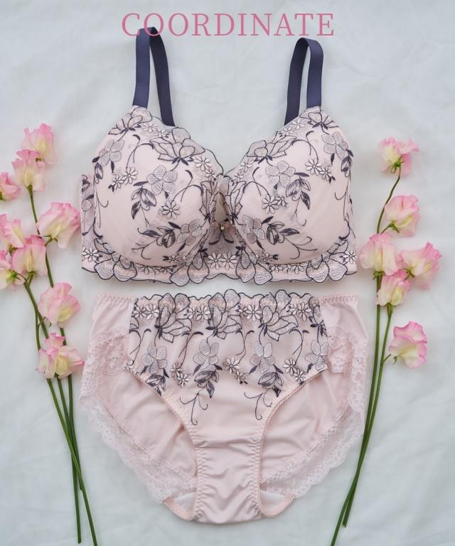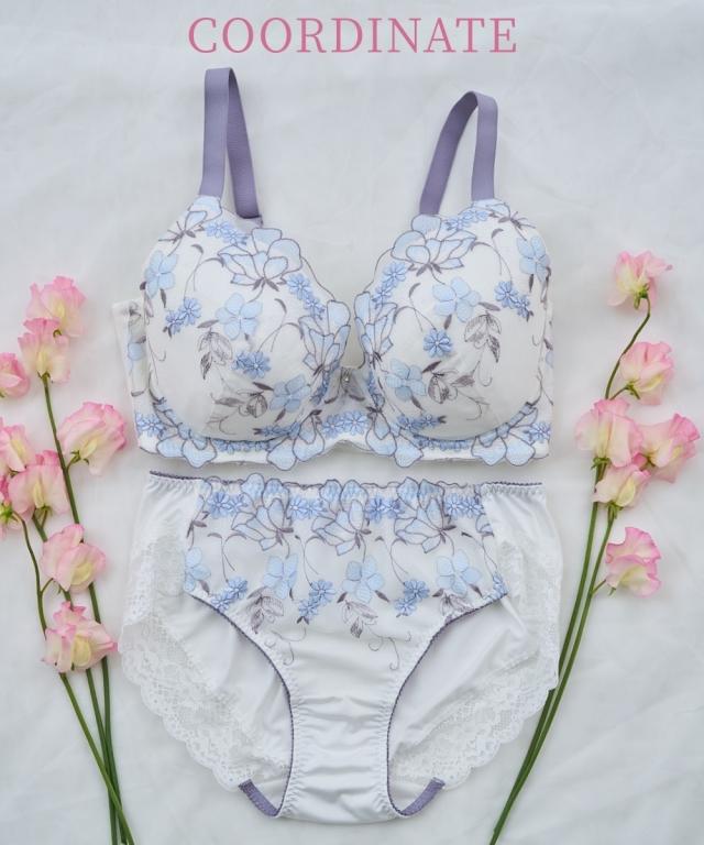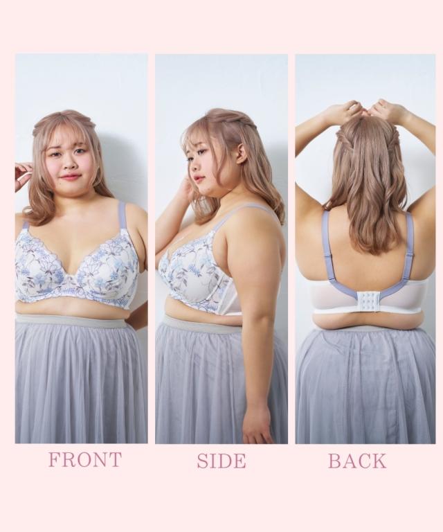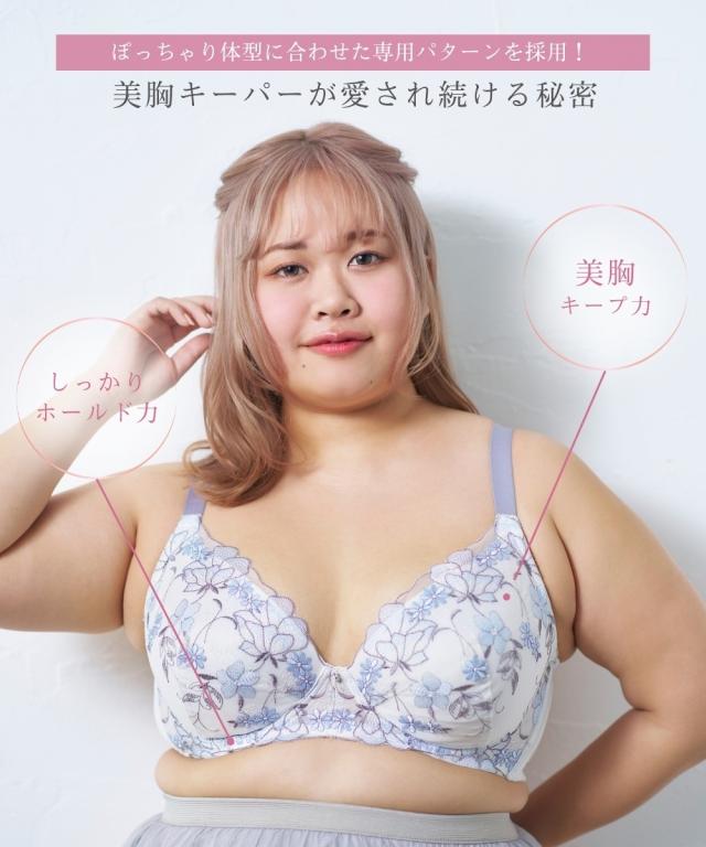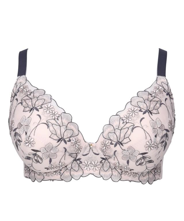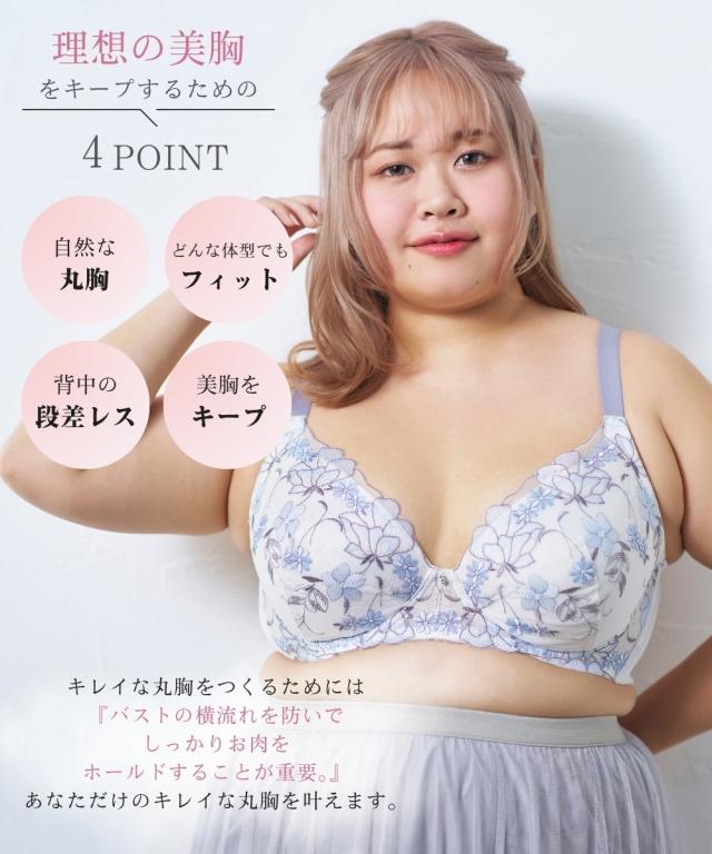 ストラップがズレ落ちにくくなりました! ぽっちゃり体型に合わせた専用パターンを採用! グラマーバストをしっかりホールド。 バストの横流れを防ぎキレイなシルエットをキープ。 可憐さのある花とピュアで可愛さのある小花をMIXした刺繍柄。 アウトラインで囲まれた花柄が目を引きます