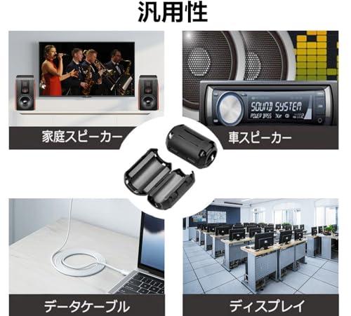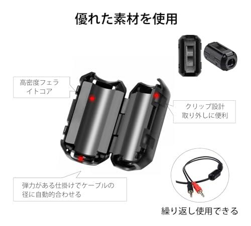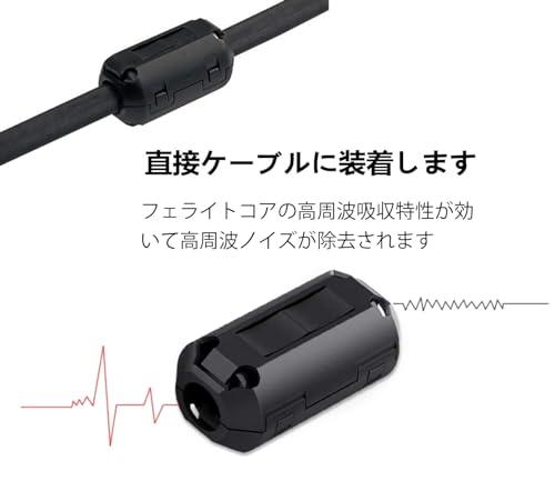 【注意】高密度フェライトコア採用によりケーブルにのる高周波ノイズを大幅にカット。1個取り付けてノイズが残る場合には複数個取り付けると効果がある場合もございます。