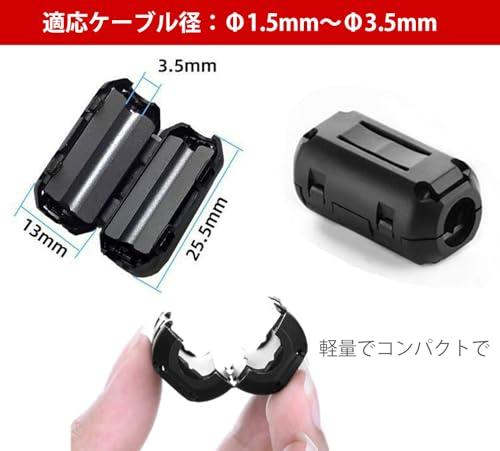ノイズフィルター フェライトコア ヒンジ式 内径Φ3.5mm 電源線 高周波 ノイズフィルター パッチンコア ノイズ除去 ノイズフィルター ノイズ吸収 耐摩耗性 耐腐食 耐高温 ブラック 10個入り