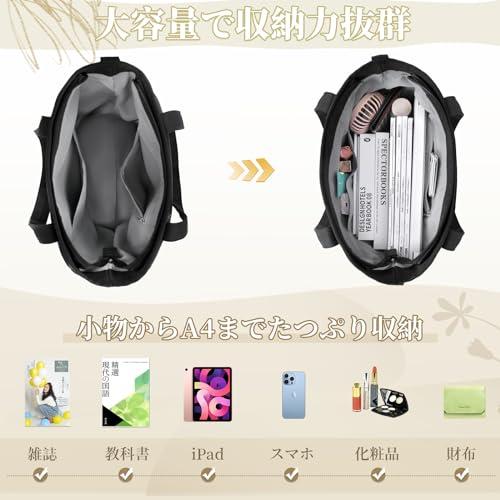 【優れた収納力】A4雑誌やiPadなど学業や仕事に必要なものが収納できる使いやすいサイズのバッグです。A4サイズのファイル、本、スマホ、水筒、長財布、折り畳み傘、化粧品、手帳など収納できます。