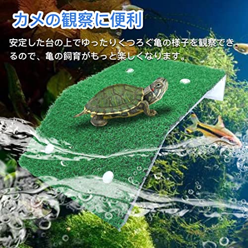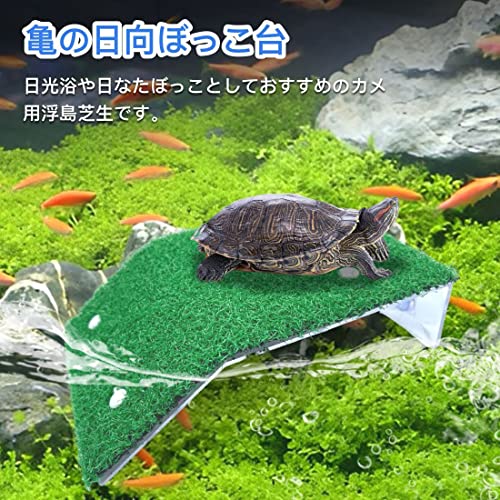 亀 浮き島 水槽台 人工芝 芝 休憩 吸盤 爬虫類 日なたぼっこ 両生類 ひなたぼっこ 生息地 登り石 シェルター (中 サイズ)