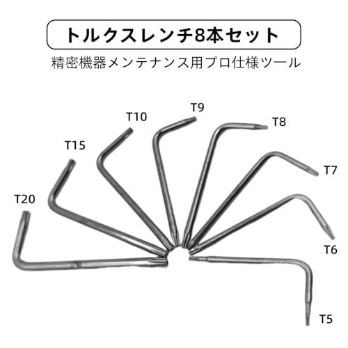 トルクスドライバー T5/T6/T7/T8/T9/T10/T15/T20 精密工具 L型レンチ付属 M-ac mini/MacBook/HDD分解 ナイフ修理 DIY改造用 耐磁性強化 精密作業工具 特殊六角星型対応 [磁石付き8本組]