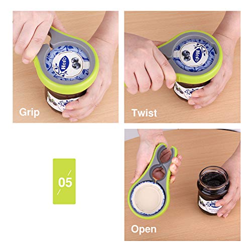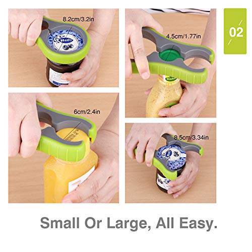 【3in1 びん蓋開け】 3イン1デザインで、直径最大8.2cm〜最小6cmの大きな蓋から小さな蓋、瓶の王冠までの密閉型蓋、幅広く利用できます。缶詰め、ビール瓶、飲料ボトル、調味料瓶などの蓋が楽々オープンでき、便利な蓋オープナーです。