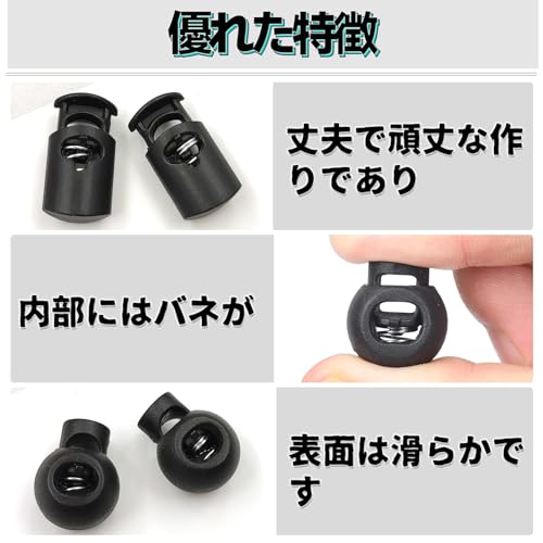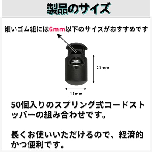 スプリング コードストッパー 穴径約6mm 紐止め金具 2つ穴コードストッパー ロープ止め 交換 補修用ロープ ストッパー ロープの取り扱いが簡単なスプリングデザインの仕組み 樽型 50個入り