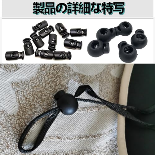 【紐止め 交換 補修用】紐の止め具がなくなったり、壊れたりした場合でも、このコードストッパーを使えば簡単に交換や補修ができます。長くお使いいただけるので、経済的かつ便利です。