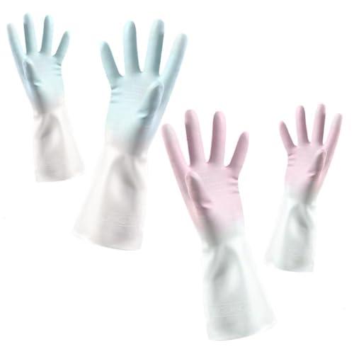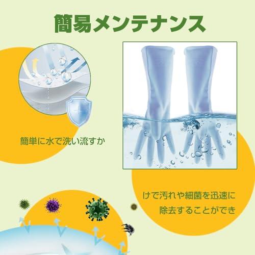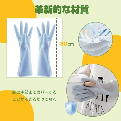 ゴム手袋 食器洗い手袋 家事用ゴム手袋 作業手袋 防水手袋 キッチングローブ 洗い物 ロング 長い 滑り止め 洗車 炊事 洗濯 園芸 掃除用 M+L 2本いり ブルーx2
