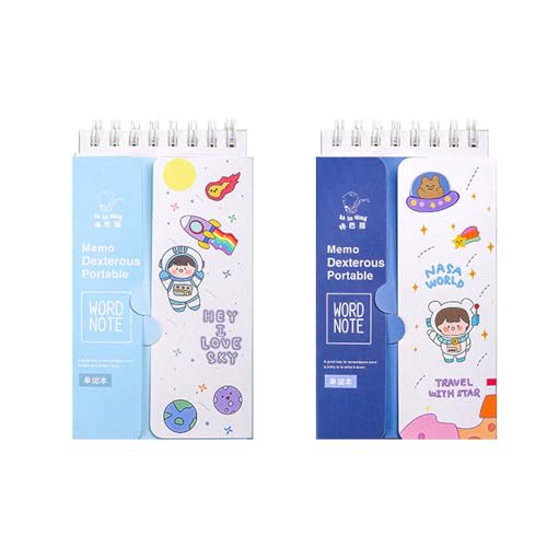 学習帳 単語帳 暗記カード かわいい カバくま 遮る可能な単語帳 メモ帳 ノート 単語ノート 漢字 英語 大容量 カードリングとじ 検定 勉強 計画 試験 歴史 語学 漢字学習用品 学習用品 暗記効率アップ レトロカラー 2色 マカロン (ダークブルー+ライトブルー) ...