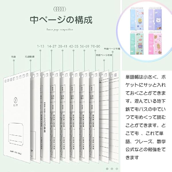 【多用途】:この商品は単語カードだけでなく、メモ帳、メッセージカード、ノートなどとしても使用できます。さまざまな学習、オフィス、生活のニーズに対応できます。