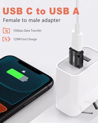 USB A C 変換アダプタ 10Gbps USBオスからUSBタイプCメス変換アダプターコネクタ サポート:片側データ同期と120Wの高速充電iPhone 15 Plus Pro Max ノートPC 充電器 Quest Linkなど (1個入り)