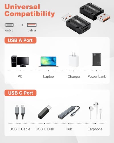 USBタイプAからUSB C変換アダプタは、ノートパソコン、Oculus Linkアダプタ、モバイルバッテリー、USB-Cイヤホン/ハブ/フラッシュドライブ/リーダーなど、さまざまなタイプCデバイスとの互換性があります。