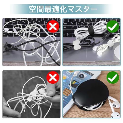 イヤホン 収納 充電ケーブル 自動巻き 巻き取り 充電コード 絡まり防止 多機能ケーブルワインダーブ 管理データ充電ケーブルオーガナイザー 軽量 小型 持ち運びに便利 (黒+白) コード イヤホンケース 車/家/オフィス用 ケーブル 自動で巻き取れて 4点セット ...