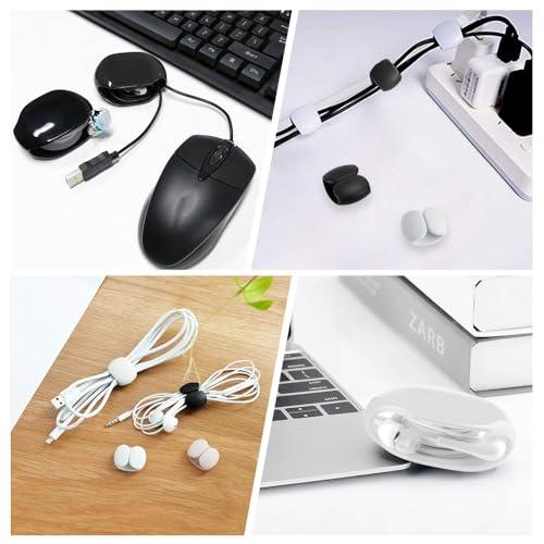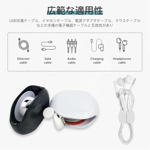 イヤホン 収納 充電ケーブル 自動巻き 巻き取り 充電コード 絡まり防止 多機能ケーブルワインダーブ 管理データ充電ケーブルオーガナイザー 軽量 小型 持ち運びに便利 (黒+白) コード イヤホンケース 車/家/オフィス用 ケーブル 自動で巻き取れて 4点セット