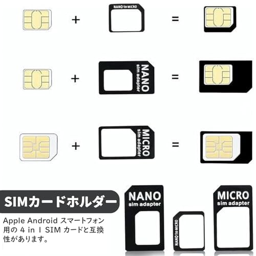 SIMカードアダプター simピン nano SIMからmicro SIMへの変換器 SIM アダプター simカードアダプタ変換キット ユニバーサル 取り付けが簡単 SIMカードホルダー 多機能シムピン付き SIMカード 変換用 (4個セット)