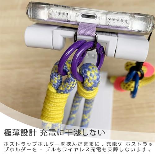【取付簡単】付属のストラップホルダーをスマホケースに挿入し、充電ポートからリングを取り出してから、スマホストラップをリングに固定します。注意:底部の中央開口部が12mm以下、または底部全体が開いているスマートフォン保護ケースとは一緒に使用できません。