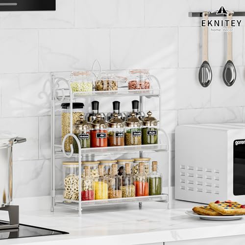 調味料ラック 卓上収納ラック 3段 大容量スパイスラック キッチン収納ラック 組み立て不要 幅30×奥行15×高さ40cmキッチンラック ホワイト