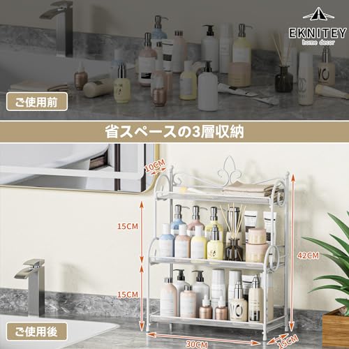 大容量の階層ストレージ: 3段のストレージスペースで、大小のボトルや瓶をすべて収納できます。 スパイス、香水、ローション、化粧品、マニキュア、その他の化粧品を収納するのに最適です。 バスルーム、キッチン、寝室などに適しています。 キッチンラック、必要なものをすぐに見つけましょう。