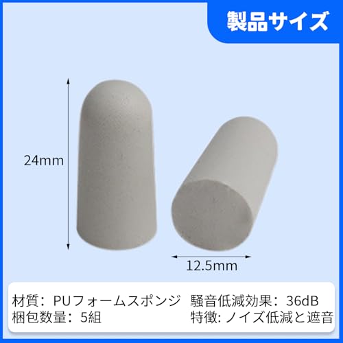 耳栓 睡眠用 低反発柔らかい 耳せん 防音スポンジ 耳せん 遮音 防音イヤープラグ ノイズキャンセリング 快眠 安眠グッズ 柔らかくて快適 持ち運びが簡単 36dB低減 騒音対策 クラフト紙袋 男女兼用 グレー 5ペア