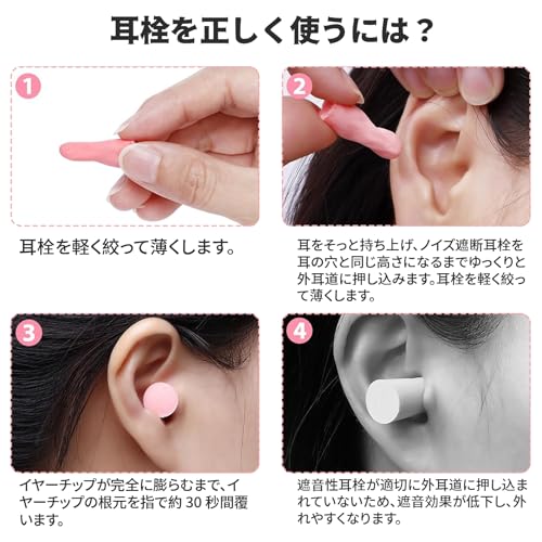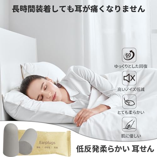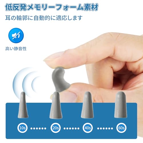 【低反発メモリーフォーム素材】:低反発メモリーフォーム(ポリウレタン)を採用しており、柔らかく肌に優しい耳栓で、長時間装着しても耳が痛くなりません。素材が外耳道にフィットし、耳栓の安定性を確保し、外耳道が敏感な人にも適しています。