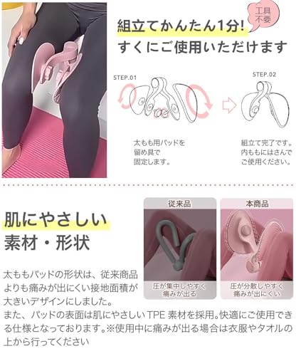 【 内転筋・骨盤底筋を ながら トレーニング 】 本商品は、内転筋や骨盤底筋をおうちで手軽に鍛えられる器具です。「座りながら」「寝転びながら」「立ちながら」など、 ながら トレーニングにぴったりのアイテムです。忙しい日々のスキマ時間に、ぜひご活用ください。