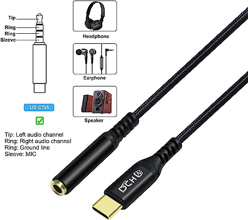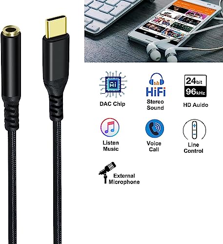 USB オーディオ 変換アダプタ ケーブル USB C イヤホンジャック ヘッドフォンジャック 変換 Type-C 3.5mm ステレオミニ端子 TRRS/4極 USB 変換 ナイロン編み DACチップ付き 24bits/96KHz対応 Hi-Fi音質 (ブラック)