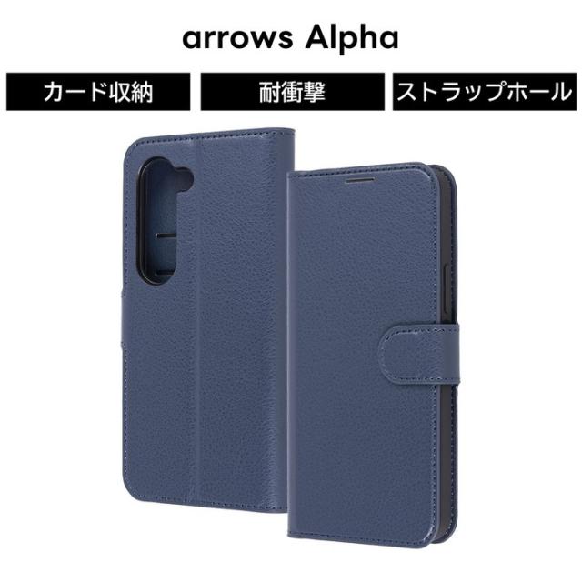 arrows Alpha ケース 手帳型 シンプル docomo F 51F アローズ arrowsAlpha 耐衝撃 おしゃれ ネイビー レザー ソフト ハード スマホケース カード収納