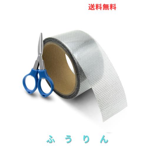 【セット内容】網戸補修テープ×1枚 + ハサミ×1個 、サイズ:約幅5cm×全長5m。色:グレー
